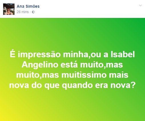 É pelos comentários à publicação que podemos perceber que sim, Ana Bola, acha mesmo que Angelino está muito melhor agora do que há uns anos, e que sim, há uma insinuação ao facto de ter sido casada com o cirurgião plástico Ângelo Rebelo.