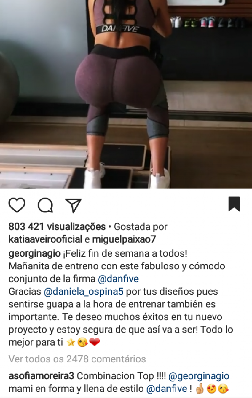 “Combinação top, Georgina Rodríguez. Uma mamã em forma e cheia de estilo”, escreveu a mulher de Pepe na legenda do vídeo no qual Georgina Rodríguez surge a exercitar o corpo, em casa de Cristiano Ronaldo.