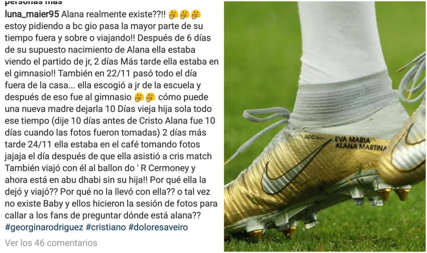 A propósito de Georgina Rodríguez ter viajado para os Emirados Árabes Unidos para apoiar Cristiano Ronaldo e o Real Madrid no Mundial de Clubes, um detrator do casal escreveu um texto em que acusa a bailarina de ser uma mãe ausente, tal a quantidade de vezes que já saiu de casa e do país (Espanha) neste primeiro mês de vida de Alana Martina.