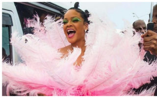 Rihanna brilha de cor-de-rosa no Carnaval de Barbados