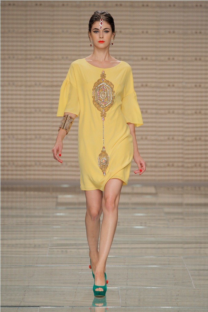 O criador transportou o exotismo e o charme da Índia mais portuguesa  para a passarela, apostando no ouro, no brilho e nos bordados. Carlos Gil escolheu, ainda, cores vibrantes e enriqueceu os tecidos com bordados e pedrarias.