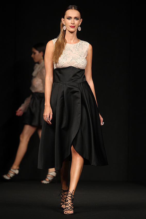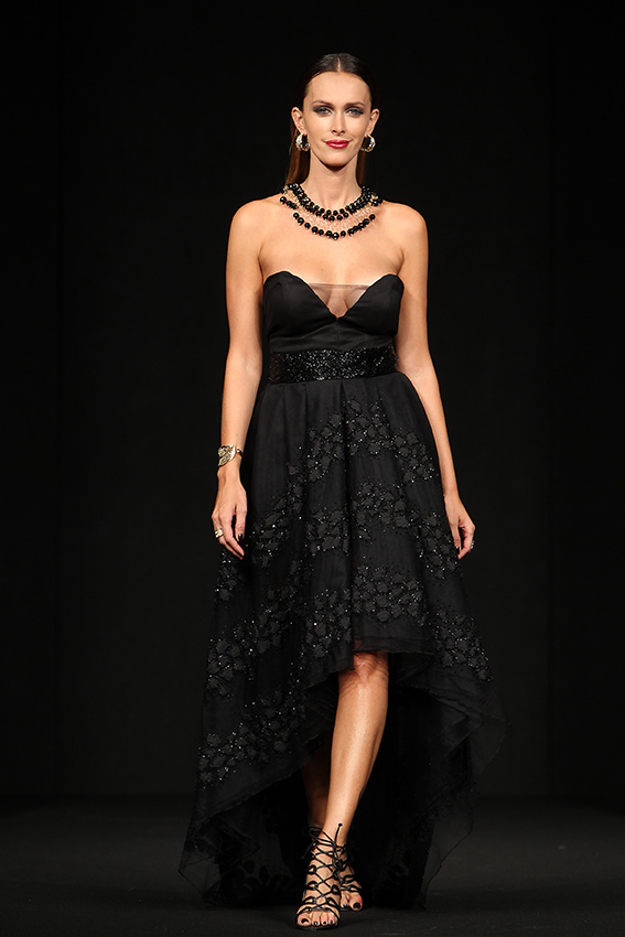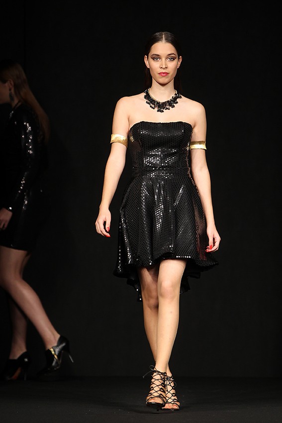 Lantejoulas, brocados e organzas foram os principais materiais usados, que conferem às criações um toque arrojado e forte. “A nível de cores optei pelo preto que é imprescindível neste tema, o dourado, prateado e o nude”, acrescentou.