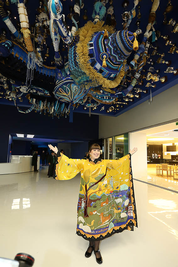 No lóbi do museu o presidente era esperado pelo Bispo D. Januário, que benzeu o espaço, e a artista Joana Vasconcelos, que criou a obra que está exposta no local: Valquíria Dragão. “Para mim é um privilégio e uma honra ter recebido este convite”, afirmou a artista, que se inspirou na mitologia nórdica para criar a obra. “As valquírias sobrevoavam os campos e salvavam os bravos das batalhas. Espero que ajude este clube maravilhoso a ser melhor”, acrescentou. Joana não está habituada a ter obras neste tipo de museus, mas mesmo assim sentiu-se “orgulhosa”.