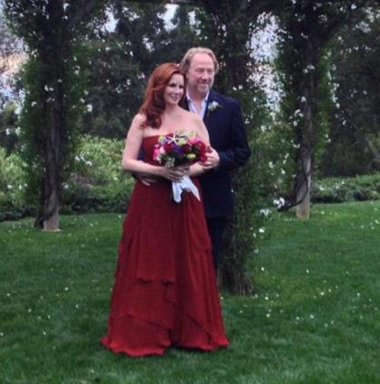 Melissa Gilbert, de 48 anos, casou com o ator Timothy Busfield, de 55. No terceiro casamento, a atriz escilheu um vestido encarnado.