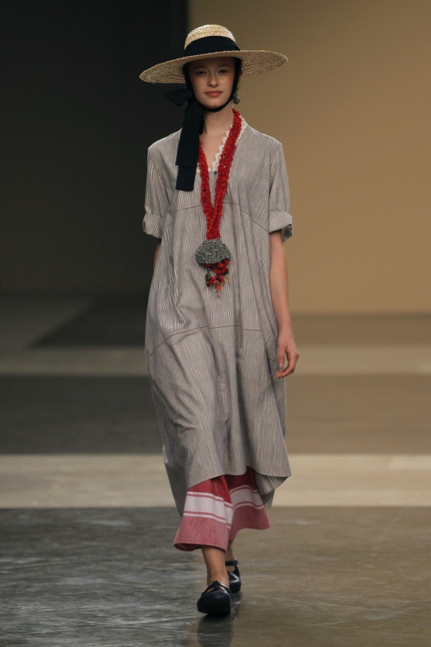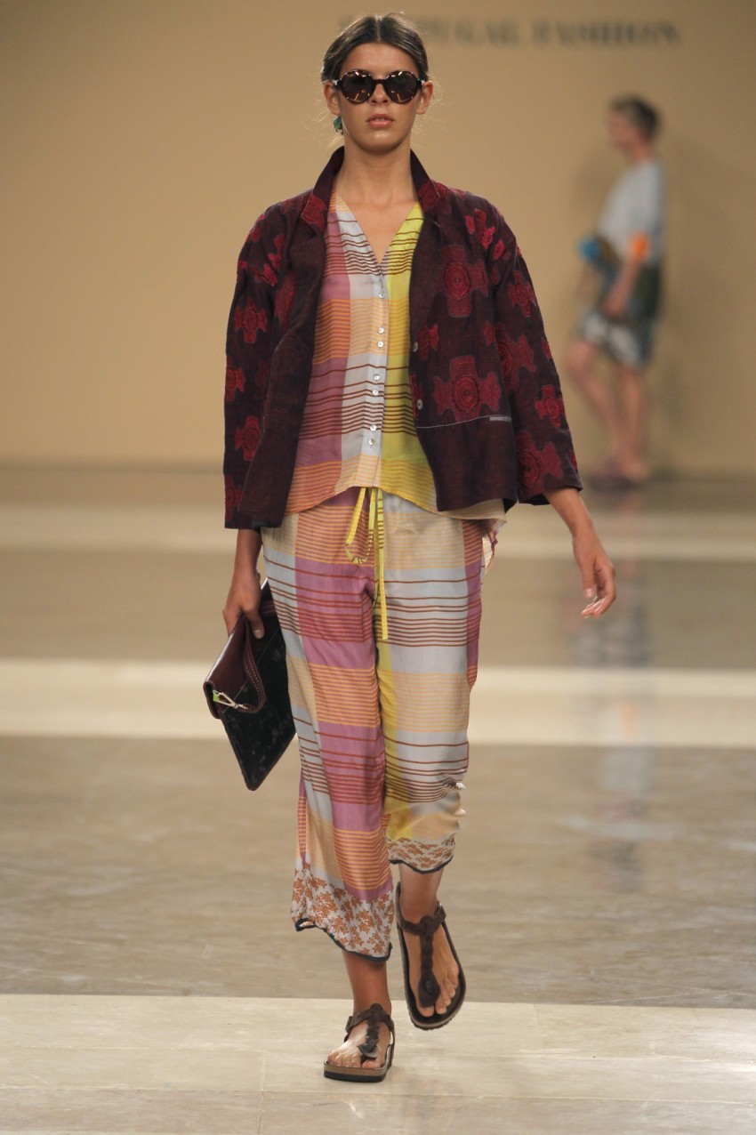 Entre as peças pode-se encontrar vestidos volumosos, saias plissadas, calças retas, casacos soltos e jerseys desportivos, túnicas longas, em telas de algodão, sedas e linhos, num universo de padrões e cores vivas, contradizendo a ideia de que sensualidade e beleza são sinónimo de mulheres com roupas justas e saltos altos.