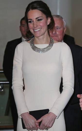 A duquesa usou uma joia que é vendida na Zara por 26 euros e um vestido Roland Mouret.