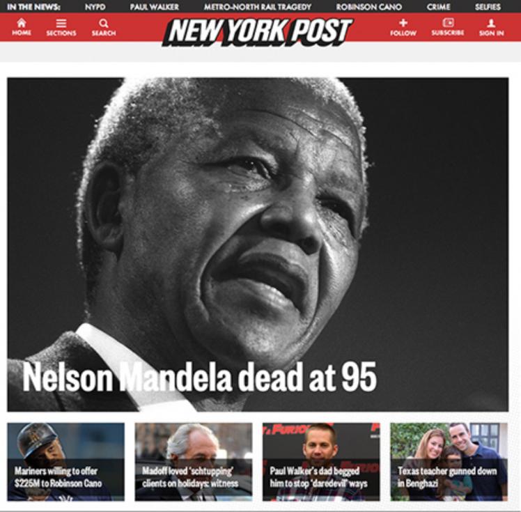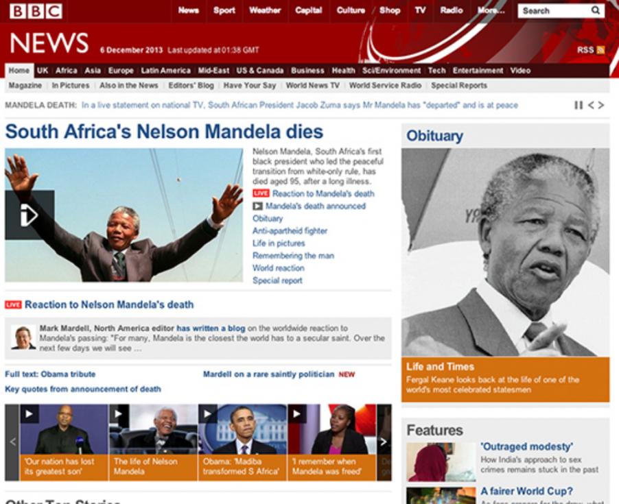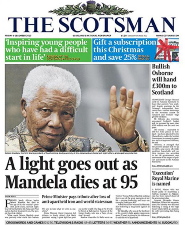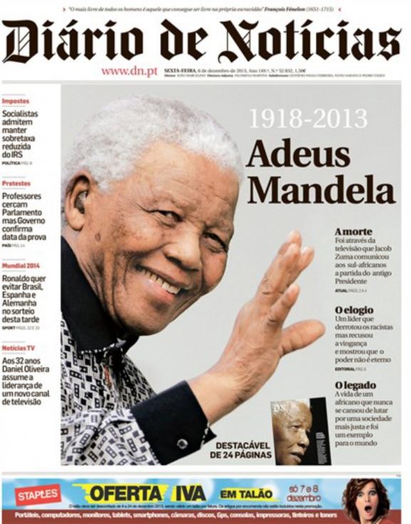 Nelson Mandela é capa de jornais e revistas e é assunto principal em edições online por todo o mundo esta sexta-feira, dia 6. O ex-líder sul-africano faleceu na quinta-feira, devido a uma infeção pulmonar.