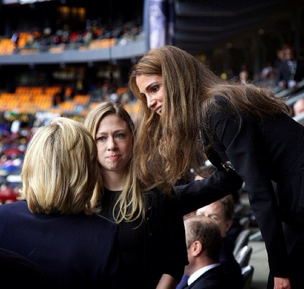 Até ao momento, contam-se, entre as fotografias partilhadas, uma ao lado do recém-falecido líder de África do Sul, outra com Barack Obama, outra com Bill Clinton, e ainda uma foto do seu marido, o atual rei da Jordânia, com os filhos às cavalitas.