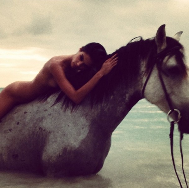 A manequim partilhou uma imagem no Instagram, onde surge nua em cima de um cavalo. A imagem sensual foi captada por Raphael Mazzucco, após o final de uma sessão para a Calzedonia em Antígua. “Momento mágico no final da sessão”, escreveu na legenda.