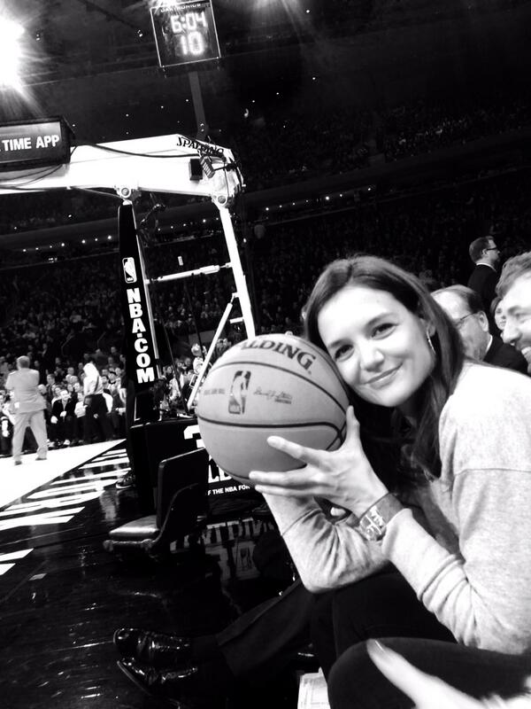 A atriz foi assistir na quinta-feira, dia 9, ao jogo de basquetebol entre o Miami Heat e o New York Knicks. Durante a partida, Katie mostrou-se animada e posou sorridente com uma bola de basquetebol. “Passei bons momentos no jogo de hoje à noite do Knicks!”, escreveu no Twitter a ex-mulher de Tom Cruise, na legenda da foto que publicou.