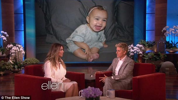 A socialite, de 33 anos, foi convidada do programa de Ellen DeGeneres, que foi para o ar esta sexta-feira, dia 17, nos EUA. Kim Kardashian mostrou novas fotos da filha, North, de 7 meses, e falou sobre a experiência da maternidade.