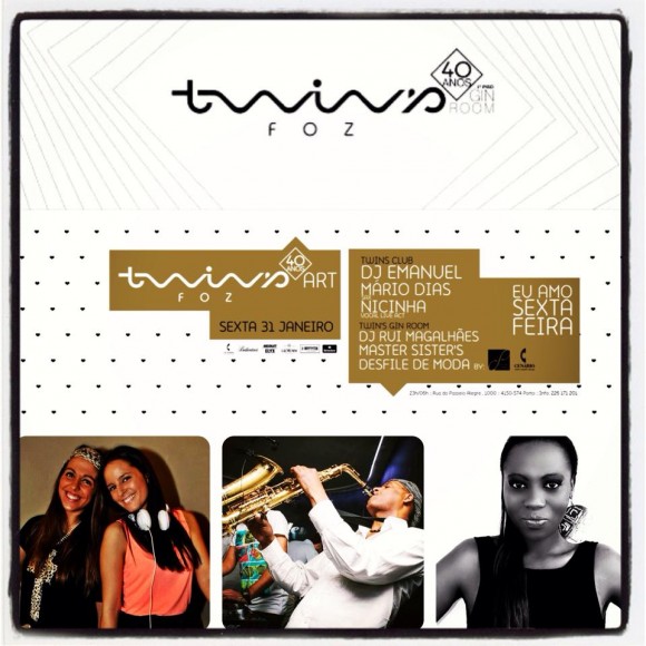 Esta sexta-feira, dia 31, o Twin’s Foz oferece a “Festa Eu Amo a Sexta-feira”, que terá uma desfile de moda by Pecado Capital, e a atuação do Dj Rui Magalhães, The Master Sisters Djs, Dj Emanuel, Live Act Nicinha e Mario Dias Sax. As mulheres não têm consumo obrigatório, com direito a duas bebidas de oferta, e os homens pagam 8 €.