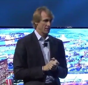 Michael Bay atrapalhou-se com o teleponto, ao apresentar uma televisão da Samsung no evento de tecnologia Consumer Electronics Show (CES 2014), e abandonou mesmo o palco.