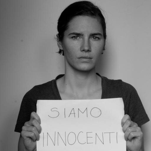 A norte-americana levou A sua luta para as redes sociais e publicou no Twitter uma fotografia a preto e branco onde se pode ler ‘siamo innocenti’ (estamos inocentes).