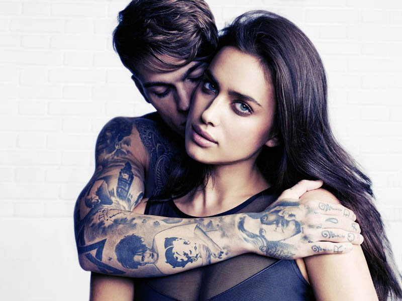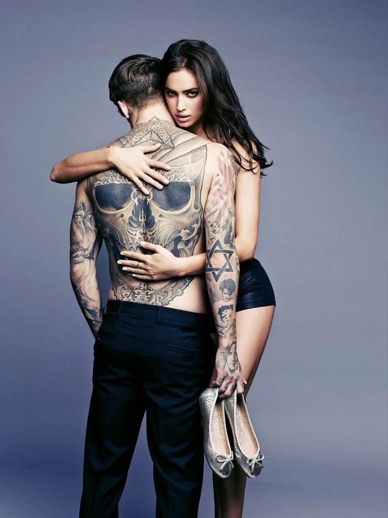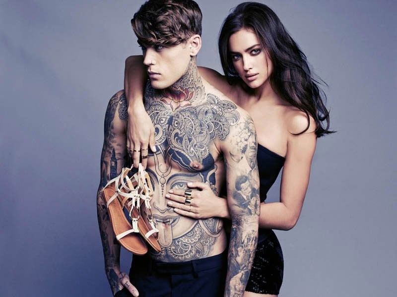 A namorada de Cristiano Ronaldo posa de forma sedutora junto ao modelo britânico Stephen James, famoso pelas inúmeras tatuagens.
