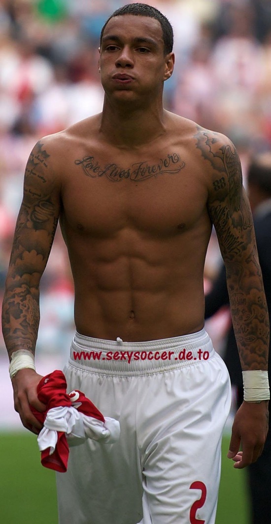 Ele só tem 26 anos, mas Gregory van der Wiel vai ser um dos atletas mais sexys deste mundial ao representar a Holanda, em terras brasileiras. Tem o corpo todo “desenhado”, com tatuagens…claro! Lindo.