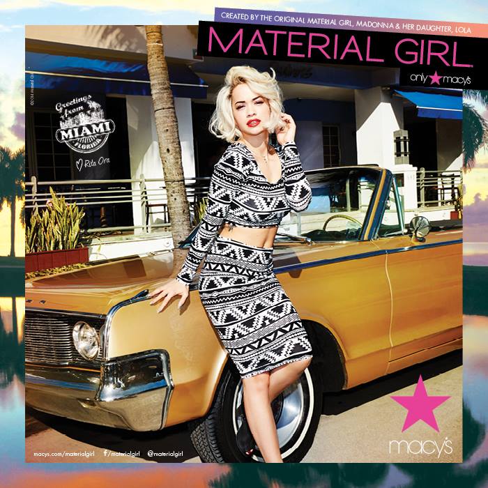 Já foi desvendada a coleção primavera 2014 da marca Material Girl, a linha de roupa de Madonna. Mais uma vez a cantora Rita Ora é a estrela da campanha.