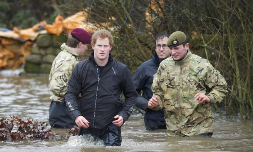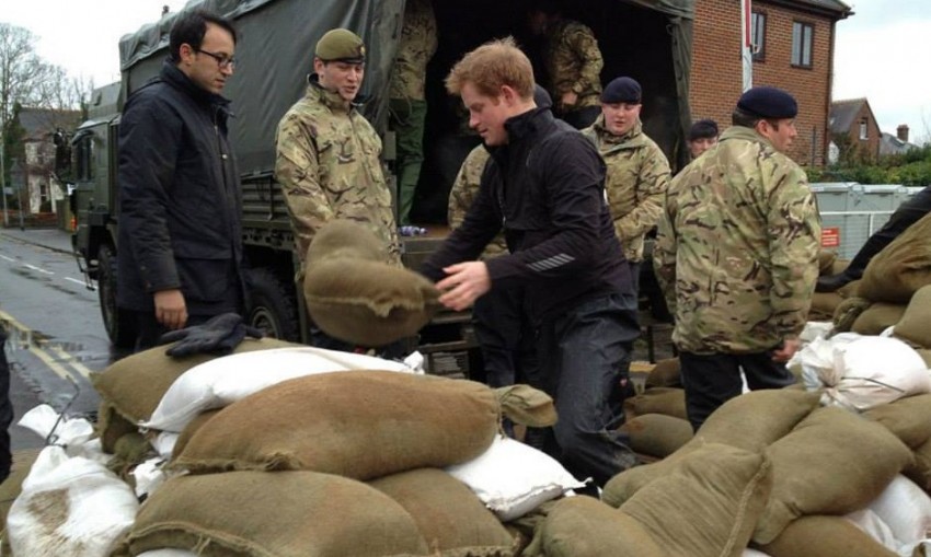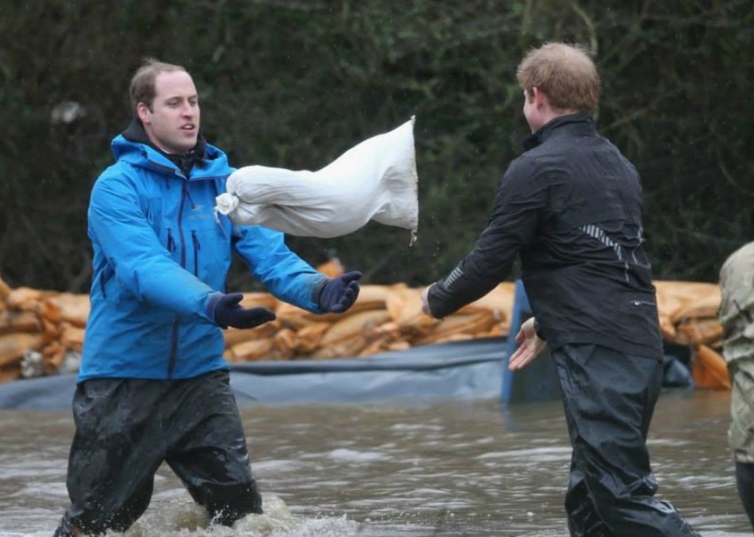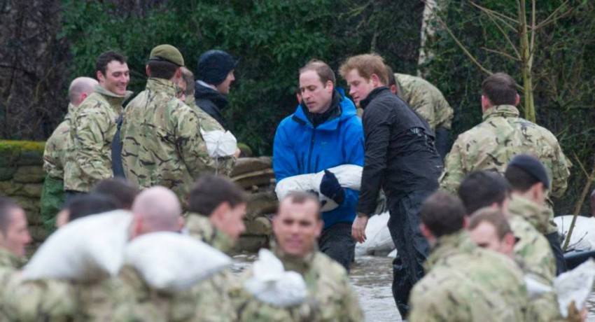 Os príncipes William e Harry passaram o dia de sexta-feira, dia 14, a ajudar soldados britânicos envolvidos no combate às inundações que afetam o sudeste de Inglaterra.