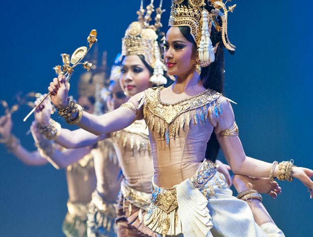 Ligado há mais de mil anos à corte khmer, a companhia Ballet Real do Camboja é conhecida pelos gestos graciosos das mãos das bailarinas e pelos trajes tradicionais.