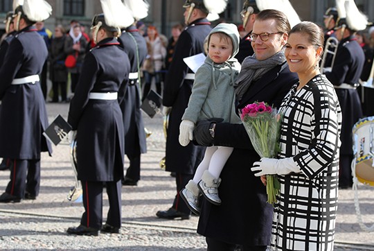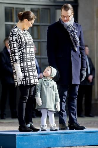 A menina, de dois anos, acompanhou os pais nas comemorações do dia com o nome da princesa Victoria, que se realizaram no Palácio Real, em Estocolmo, e depressa se tornou o centro das atenções.