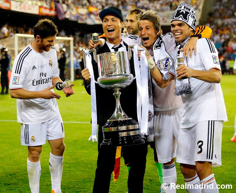 Mesmo desfalcado com a ausência do melhor do mundo, lesionado na coxa, os merengues venceram o Barcelona por 2 a 1 no estádio Mestalla, em Valência, e conquistaram a Copa do Rei pela 19ª vez.