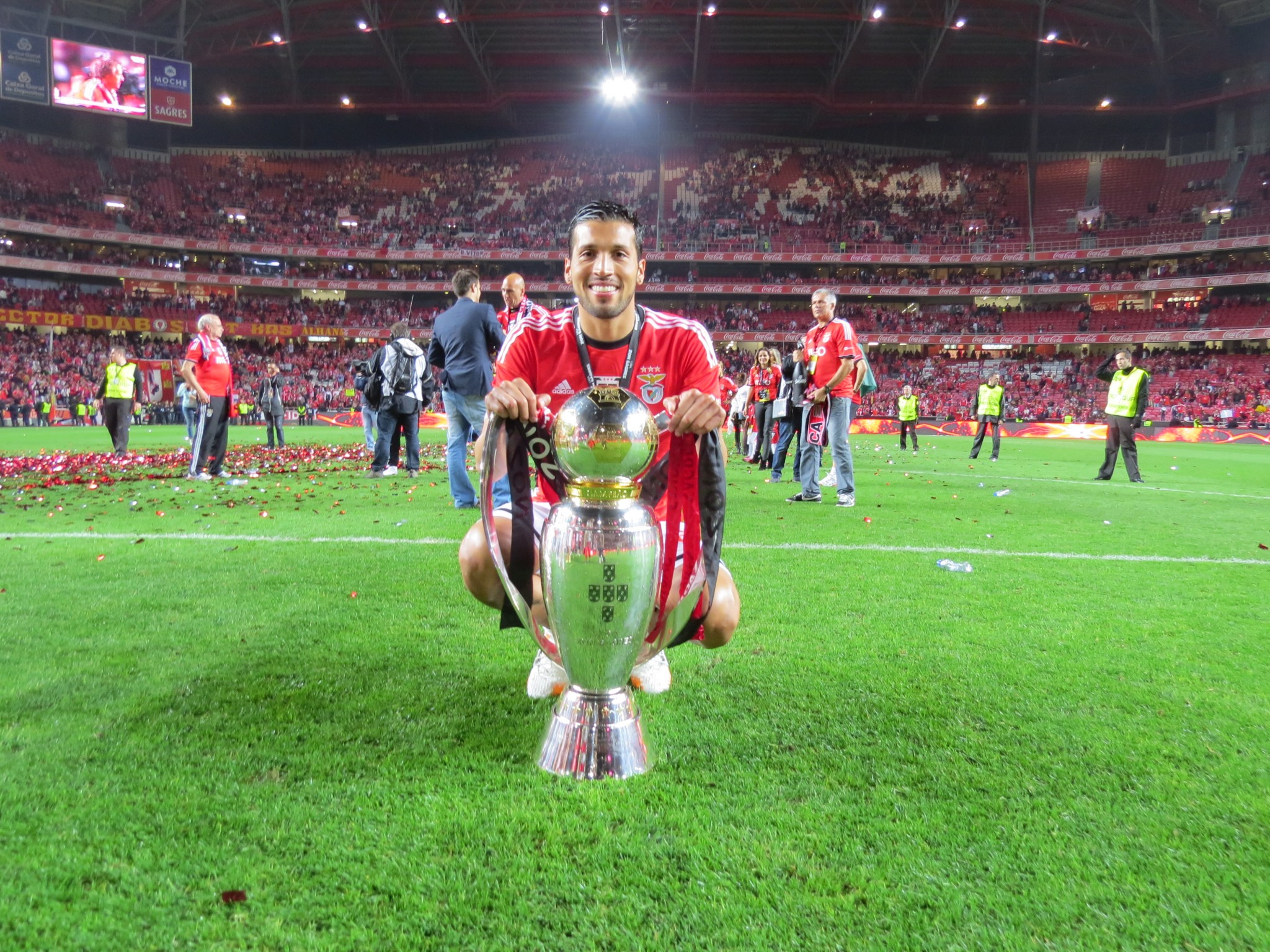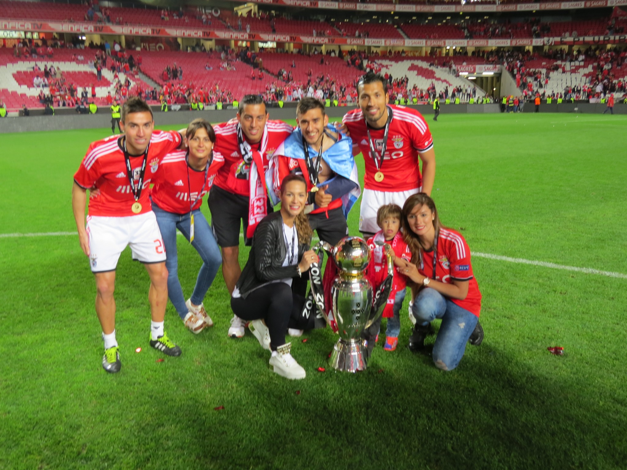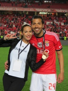 A apresentadora, que assistiu ao jogo na Luz ao lado da mãe, publicou várias imagens da festa do título. O casal vestiu camisolas idênticas, que Garay apenas mostrou no final da partida frente ao Olhanense, onde se podia ler “Somos Um”, que é o lema do jogador e de Tamara, conforme contou a mulher do craque no blogue.