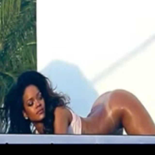 As fotos do flagra foram publicadas pelos fãs da cantora no Instagram. As imagens mostram Rihanna apenas com um top e ténis. Esta seria uma produção para uma revista francesa em Hollywood.