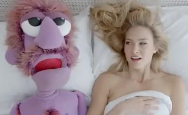 No entanto, o anúncio da Hoodies poderá ser visto no pequeno ecrã de noite. As imagens sugerem que a ex de Leonardo DiCaprio acabou de fazer sexo com uma personagem dos Marretas. De seguida, o boneco começa a imaginar fantasias com a modelo, incluindo uma cena de lavagem do carro e uma partida de strip-poker.