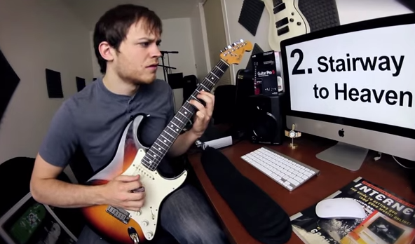 Em apenas um minuto, Rob Scallon toca, com a guitarra, trinta músicas que ficaram para a história. Segundo o vídeo, divulgado pelo “Huffington Post”, a lista começa com o tema do videojogo “Mario” e termina com o tema “Nüguns”, da banda System Of A Down.