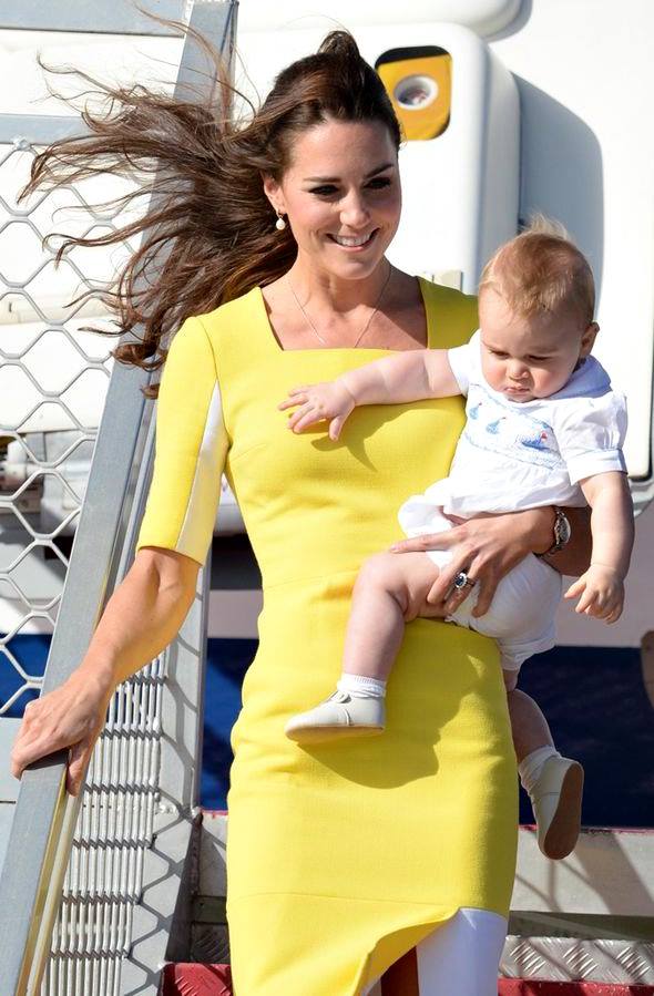 Para o primeiro dia de visita ao país, Kate elegeu um vestido amarelo de Roksanda Ilincic.