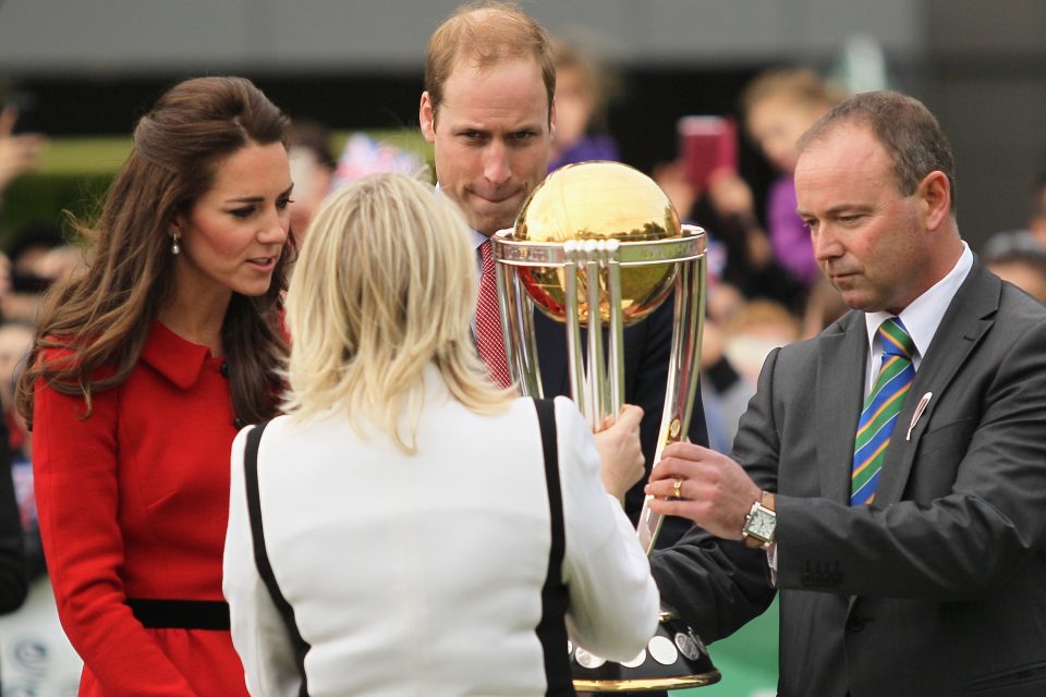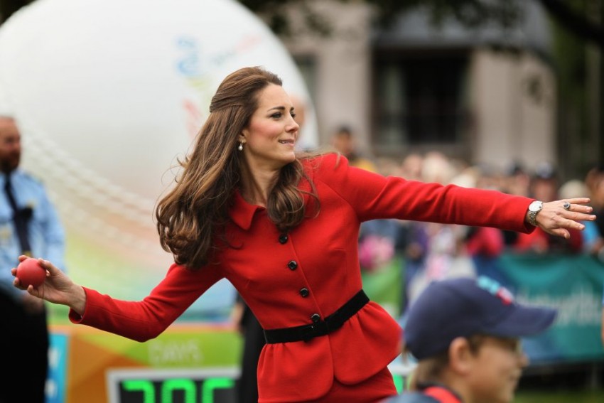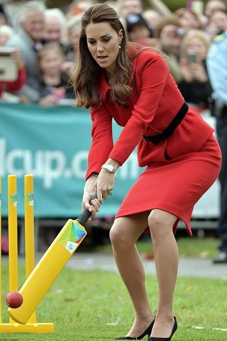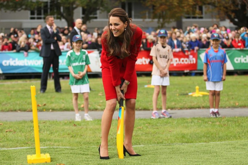 Apesar de usar saia e estar de saltos altos, Kate não se fez rogada e participou numa partida de críquete, durante a visita à Taça do Mundo de Críquete. Sempre bem disposto e sorridente, o casal real voltou a encantar a multidão que assistiu ao evento.