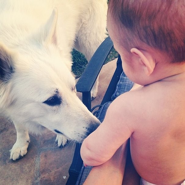 Na imagem o menino está a brincar com o cão. “Mal posso esperar por mais horas e horas disto”, escreveu Daniela Ruah na legenda.