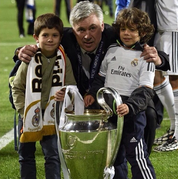 O treinador do Real Madrid, Carlo Ancelotti, com o filho de Xabi Alonso e Marcelo