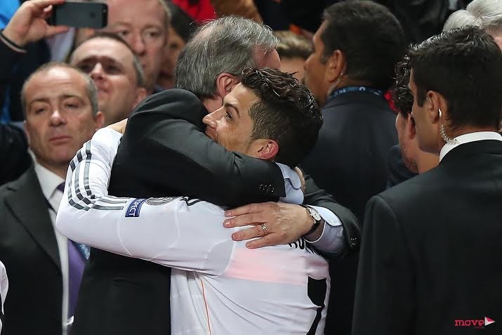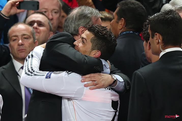 CR7 cumprimenta o seu treinador Carlo Ancelotti