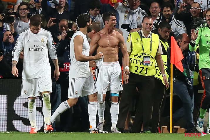 Cristiano Ronaldo festejou de forma exuberante e presenteou o público mostrando os seus músculos bem defenidos