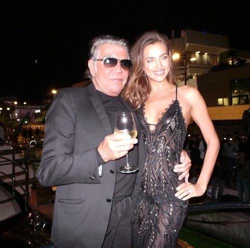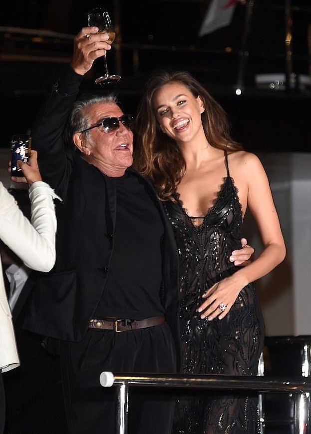 Mais tarde a modelo marcou presença na festa de Roberto Cavalli e optou por um vestido preto do criador.