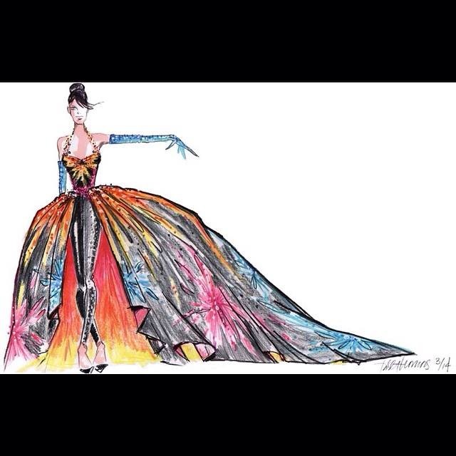 Roberto Cavalli, Todd Thomas, Moschino, Fausto Puglisi e Nicolas Jebran foram os estilistas que desenharam criações para a artista usar nas atuações.