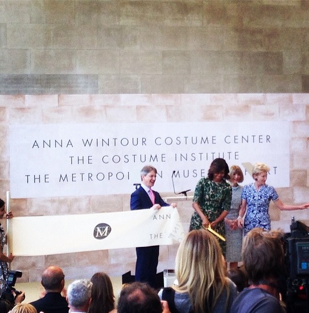 Coube à primeira-dama dos EUA fazer as honras de abertura do Anna Wintour Costume Center, no Costume Institute do MET (Metropolitan Museum of Art) de Nova Iorque. Michelle Obama cortou a fita de inauguração do centro, que conta com uma galeria de 390 metros quadrados e um laboratório de conservação de peças.