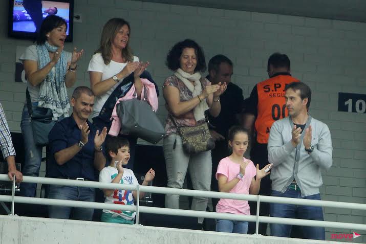 O novo treinador do FC Porto, Julen Lopetegui, passou a tarde deste sábado, dia 17, com a família, no Dragão Caixa, onde assistiu ao clássico da antepenúltima jornada do campeonato nacional de hóquei em patins.