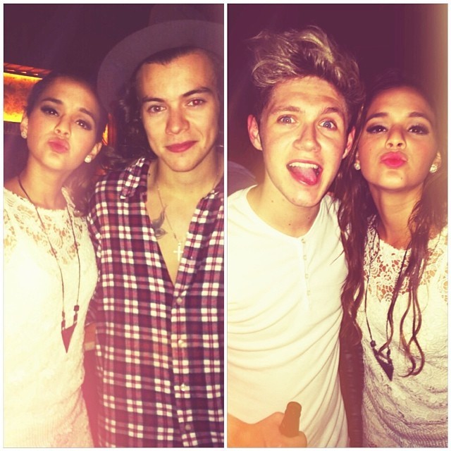 A actriz aparece ao lado de Harry Styles e Niall Horan. “Foi um prazer conhecer-vos, garotos! O show foi incrível! Vocês são realmente muito legais!”, escreveu em inglês, na legenda da foto.