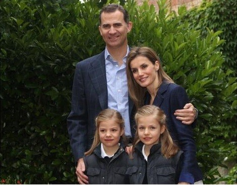 O casal real posou nos jardins da sua residência oficial de manhã cedo, antes da partida das princesas para a escola. Aliás, na imagem pode-se ver as filhas de Felipe e Letizia com o uniforme do colégio.