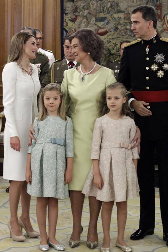 Ao que parece o branco é a cor de eleição de Letizia para os momentos mais importantes da sua vida. Quando surgiu em público para anunciar o noivado com Felipe, em novembro de 2003, usou umas calças e casaco brancos de Giorgio Armani. Também no dia do seu casamento, quando se tornou princesa das Astúrias usou um vestido da mesma cor, da autoria de Manuel Pertegaz.