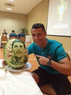 O jogador recebeu uma melancia personalizada com a sua cara e partilhou uma imagem no Facebook. “Já em Manaus #forçaportugal #nationalteam #worldcup”, escreveu CR7 na legenda da foto.