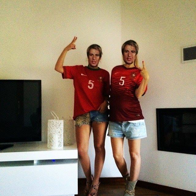 Na outra fotografia Andreia aparece ao lado da irmã com a camisola da equipa das quinas e com máscaras do lateral-esquerdo.