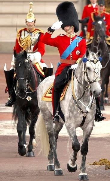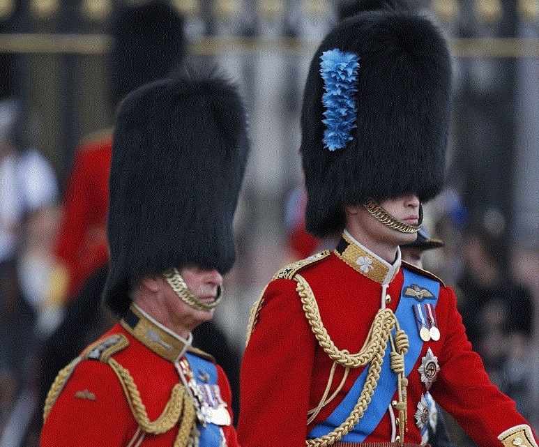 O desfile militar, realizado com pompa e circunstância, contou com a presença dos membros da realeza, sendo que o príncipe Carlos, o filho mais velho, William, e a princesa Ana desfilaram a cavalo e vestidos a rigor. Os outros familiares desfilaram nas carruagens.
