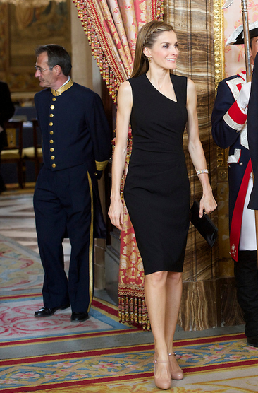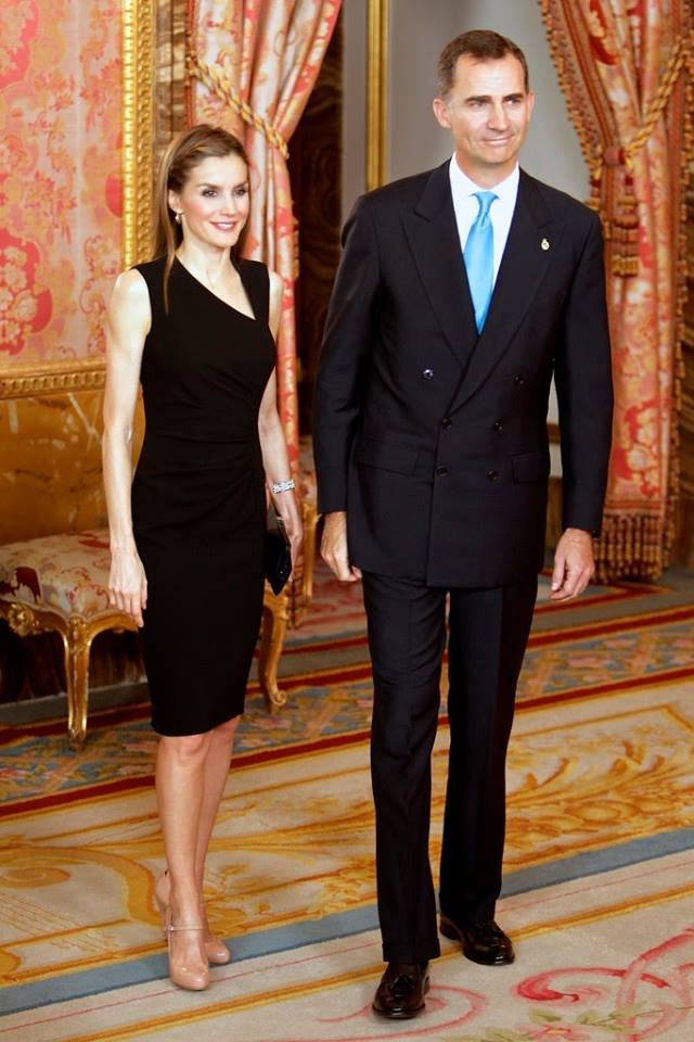 Ao lado do marido, o príncipe Felipe, Letizia participou na reunião da Fundação Príncipe das Astúrias. Para a ocasião a monarca usou um vestido preto Hugo Boss, de decote assimétrico, que já havia usado no passado mês de março.