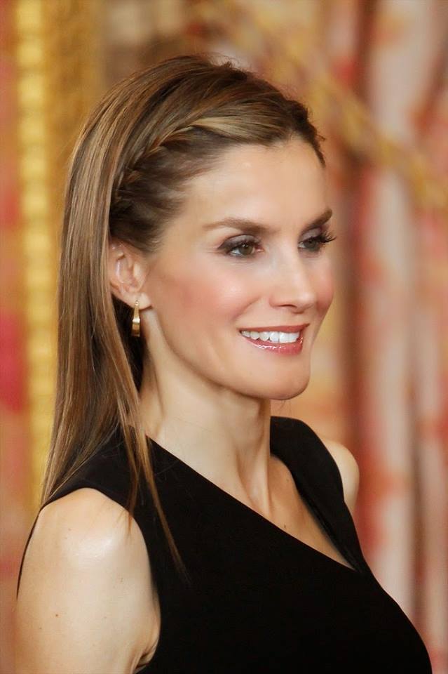 Mais uma vez, a futura rainha voltou a recorrer às tranças, um penteado que está na moda e que parece ter conquistado Letizia. A mulher de Felipe usou o cabelo solto com uma trança num dos lados.