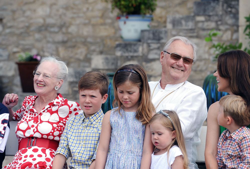 Todos os membros se mostraram bem-dispostos, especialmente o príncipe Henrik que não se inibiu de brincar com os oito netos.