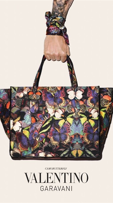 Pela terceira vez consecutiva, o fotógrafo Terry Richardson “empresta” as tatuagens ao contraste com a feminilidade das peças da coleção “Camubutterfly”, da Valentino.