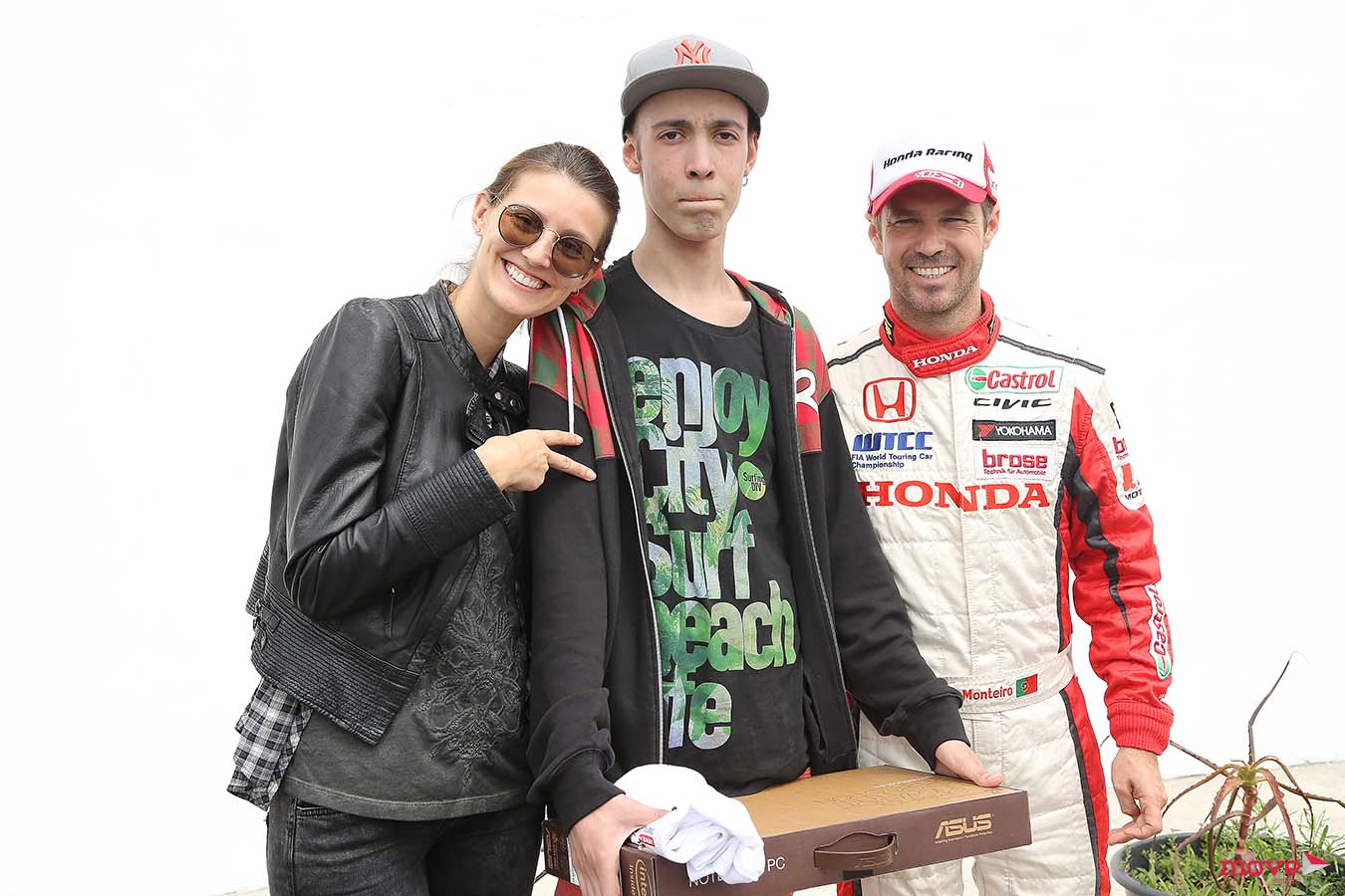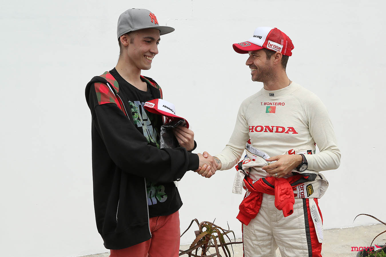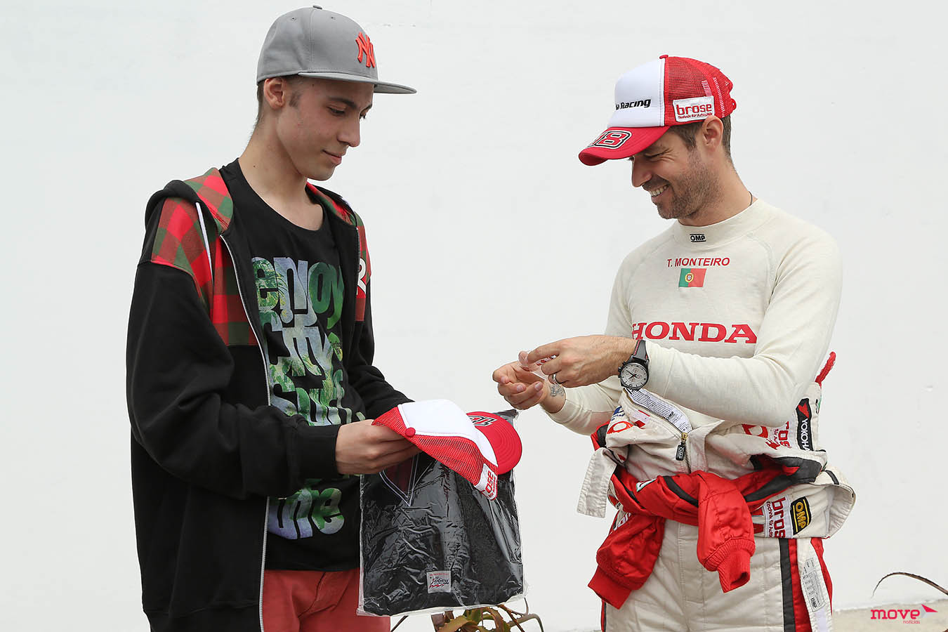 A mulher do piloto, Diana Pereira, também apareceu com um presente para o jovem de Ponte de Lima: uma camisola e um boné da equipa de Tiago Monteiro. Este foi um dia inesquecível para Samuel, que não escondeu a sua alegria.
